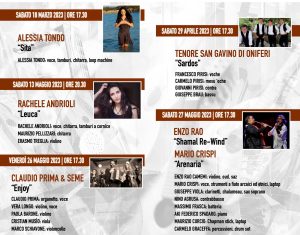 IL PROGRAMMA – Si parte sabato 18 marzo 2023 alle 17.30 con il concerto della cantautrice salentina Alessia Tondo, vincitrice del “Premio Loano Giovani” riservato al miglior disco di musicisti under 35 con il suo album “Sita”. Il 29 aprile alle 17.30 di scena il gruppo dei Tenore San Gavino di Oniferi, ensemble impegnato da molti anni nella pratica e nella diffusione del canto a tenore per valorizzare il patrimonio musicale, letterario e linguistico della Sardegna. Il 13 maggio alle 20.30 il concerto di un’altra voce pugliese, Rachele Andrioli che con il suo album “Leuca” si sta affermando come una delle nuove realtà della scena popolare italiana; venerdì 26 maggio alle 17.30 il concerto del maestro dell’organetto, Claudio Prima, leader di Bandadriatica, il quale, insieme al quartetto d’archi Seme, presenta il suo progetto “Enjoy” che unisce tradizione e musica classica. Infine sabato 27 maggio alle 17.30 due grandi artisti siciliani, Enzo Rao e Mario Crispi, uniti nel progetto Shamal Re-Wind e Arenaria, attraversano con un grande ensemble culture e tradizioni millenarie che hanno visto la Sicilia terra di contaminazione e di intrecci affascinanti. Organizzato da Associazione Ikona e Ikona Concerti, il festival, realizzato grazie alla vittoria del bando del Nuovo Imaie e con il sostegno di Puglia Sounds, fa parte della Rete italiana World Music. Il biglietto, al costo “popolare” di 5 euro, darà diritto ad assistere al concerto e alla visita al Museo.