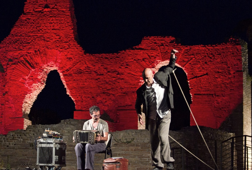 La Compagnia degli Istanti inaugura la rassegna con uno spettacolo cucito su misura per l’occasione: Tutti i colori del mondo è una produzione originale che come spiega il regista Roberto Lori (danzatore, già co-direttore della Compagnia Simona Bucci e del Festival Face Off di Matelica), «celebra un incontro di sensibilità, quello tra la fisarmonica e le arti». Un connubio virtuoso tra musica, recitazione, danza, cinema e pittura in cui il suono, il movimento, la pittura e la poesia coinvolgono lo spettatore in un abbraccio di sonorità e gesti. Le note fonte di ispirazione sono quelle suonate dal vivo da due grandi interpreti. La fisarmonica di Angelo Miele (docente e concertista di fama) guiderà la visual artist Roberta Conti in creazioni live, il bandoneon del fermano Daniele Di Bonaventura (compositore-arrangiatore, pianista, tra i primi e gli unici ad utilizzare lo strumento di Piazzolla), si inserisce nella coreografia di Lori oscillando tra evocazione e fisicità, in perfetto equilibrio fra malinconia e riflessione, passionalità ed emotività suscitata dallo strumento tipico del tango e della musica sacra. Un’atmosfera suggestiva accompagnata da immagini e video legati alla fisarmonica di cui sono parte Fabio Bacaloni (attore e danzatore), Michela Paoloni (danzatrice) e il filmmaker Filippo Ruggieri.