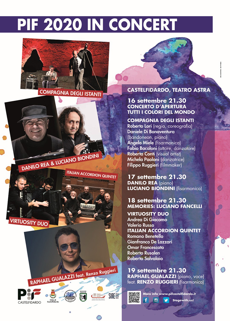 CASTELFIDARDO – ‘Tutti i colori del mondo’. Il tema del 45° PIF – Premio Internazionale della Fisarmonica – era stato scelto in epoca non sospetta e certo non si pensava che tradurlo in musica sarebbe divenuto così calzante in questa particolare fase storica. «Abbiamo cercato di trasformare le restrizioni in opportunità, diffondendo il PIF anche attraverso il web: tutti guardano con interesse a questa sperimentazione che abbattendo le distanze permette una partecipazione ancor più ampia, accentuando la vocazione mondiale e toccando tutti i cinque continenti», spiegano il sindaco Roberto Ascani e l’assessore alla cultura Ruben Cittadini, ringraziando partner come Regione Marche, Camera di Commercio e Fondazione Carilo che contribuiscono a questa speciale edizione. Con il direttore artistico Renzo Ruggieri sì è messo a punto un format nuovo, che nulla toglie alla qualità e attrattività del concorso e permette di vivere gli eventi in streaming da ogni dove o in presenza conferendo «una visibilità senza precedenti all’insegna della condivisione e della festa».