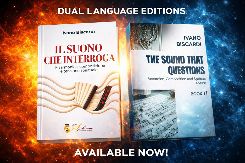 The Sound That Questions is a unique journey into the sonic heart of the classical accordion – an exploration that merges musicological inquiry, aesthetic analysis, and spiritual reflection. Through an innovative approach, Ivano Biscardi transcends the traditional divide between technique, history, and poetics, constructing a study path that interlaces organology, stylistic interpretation, biographical insight, and a deeply analytical understanding of accordion writing.