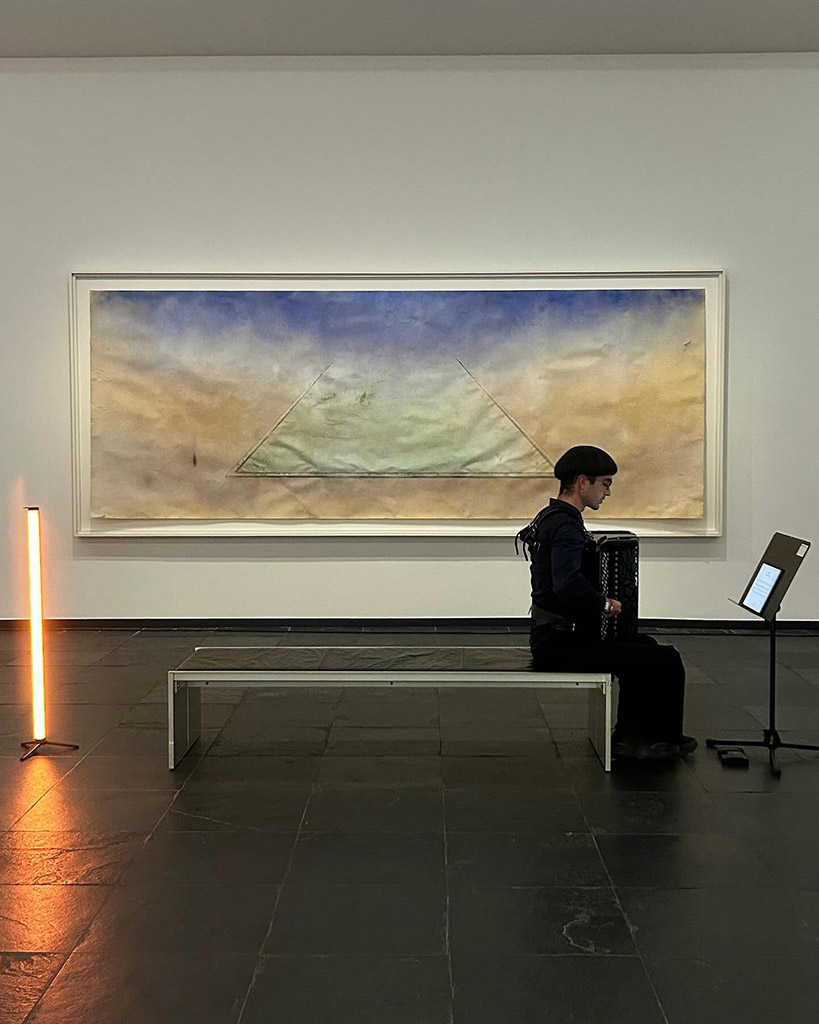 La residenza si è conclusa con una restituzione pubblica del lavoro: la presentazione del brano “Specie d’ombra in catalogo provvisorio”, una composizione di 30 minuti per fisarmonica ed elettronica, eseguita all’interno dello studio principale di ICTUS. L’evento ha visto la partecipazione dei membri dell’ensemble e di ospiti esterni, ed è stato seguito da un momento di confronto che ha confermato il valore della ricerca svolta. I feedback ricevuti hanno evidenziato sia l’efficacia estetica del risultato, sia le potenzialità evolutive del progetto, aprendo prospettive concrete per future collaborazioni e sviluppi con ICTUS e con altri interpreti interessati al nuovo dispositivo strumentale.