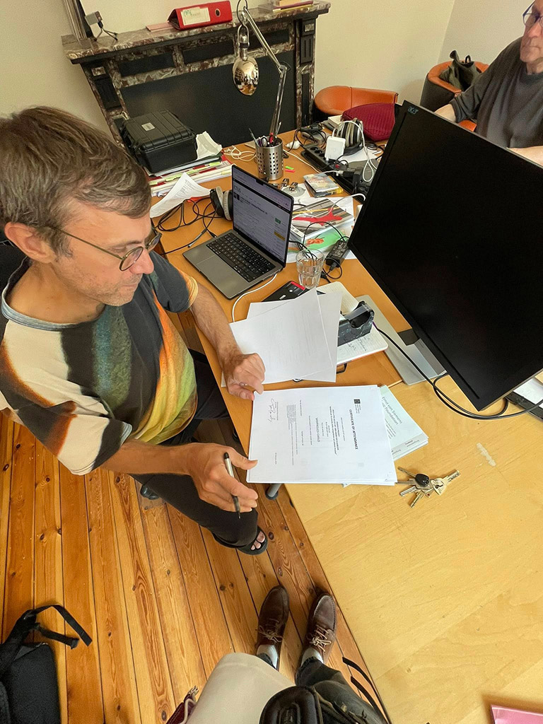 Fin dai primi giorni, l’accesso agli studi di ICTUS si è rivelato un elemento fondamentale per lo sviluppo del nostro percorso. Gli ambienti erano dotati di tutta l’attrezzatura necessaria: strumentazione professionale per la registrazione e la produzione elettronica, microfonazione avanzata, un’ampia dotazione di strumenti acustici e meccanici, oltre a numerose risorse utili alla sperimentazione. A ciò si aggiungeva la possibilità rara e preziosa di consultare gli archivi trentennali dell’ensemble, un patrimonio artistico che racconta la storia della musica contemporanea europea degli ultimi decenni. Esplorare questi materiali – partiture, registrazioni, documenti di produzione, note artistiche – ha rappresentato una fonte costante di ispirazione e ci ha offerto un quadro concreto su come ICTUS sviluppi le proprie progettualità, costruendo nel tempo un’identità artistica tanto definita quanto aperta alla ricerca.