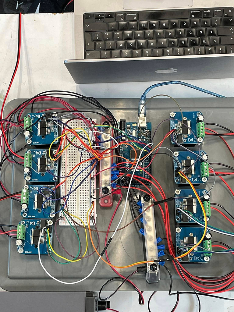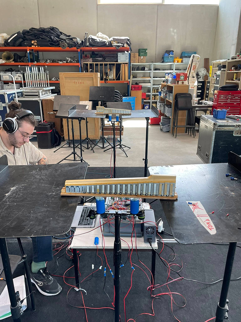 L’interazione continua tra aspetti tecnologici, acustici e compositivi ha portato alla creazione di un nuovo strumento performativo espanso e alla definizione di un linguaggio sonoro che combina materiale elettronico, suono acustico preparato e gestualità. Il processo è stato documentato con cura, per garantire replicabilità, robustezza e possibilità future di sviluppo. Le fasi di prova artistica, avviate nel mese di giugno, sono state determinanti per affinare la scrittura, verificare la resa performativa del nuovo dispositivo e integrare gli apporti critici ricevuti.