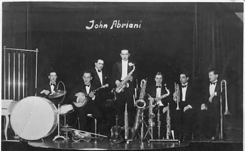 Foto: “John Abriani Mit Seinem Orchester. 1929-1930. Regina Palast Hotel, Monaco. Germania”. Per gentile concessione di Riccardo Fantin, nipote di JohnAbriani”